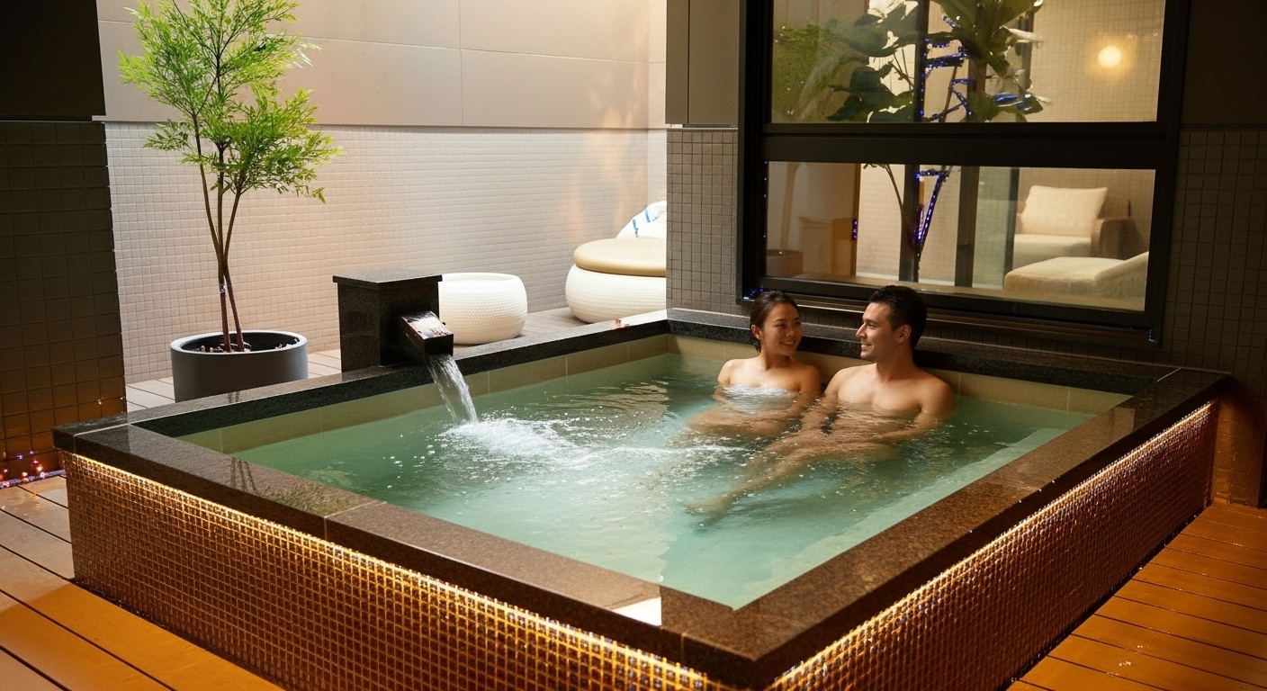 「Private SPA&SAUNA U」では、露天風呂付きの個室空間で、気分に合わせたスパ体験をお楽しみいただけます。
