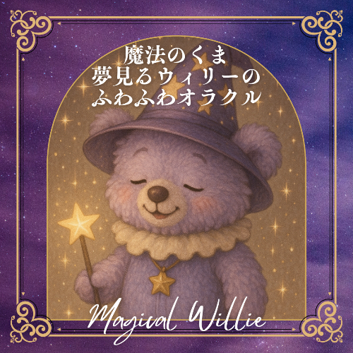 夢の世界に住むラベンダー色の魔法のくまWillie(ウィリー)が、あなたのためだけに、直感のままに5〜9枚のオラクルカードを引き、今のあなたに必要なメッセージを紡ぎます。