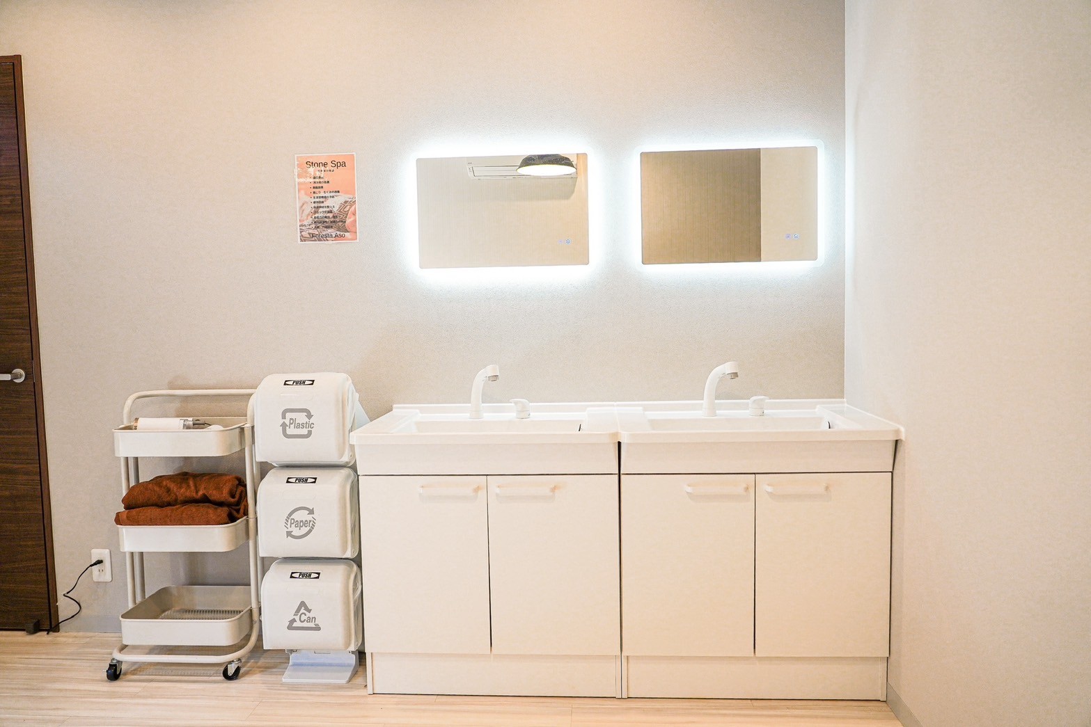岩盤浴シートに寝そべりながら極上の温熱を感じていただけます。
