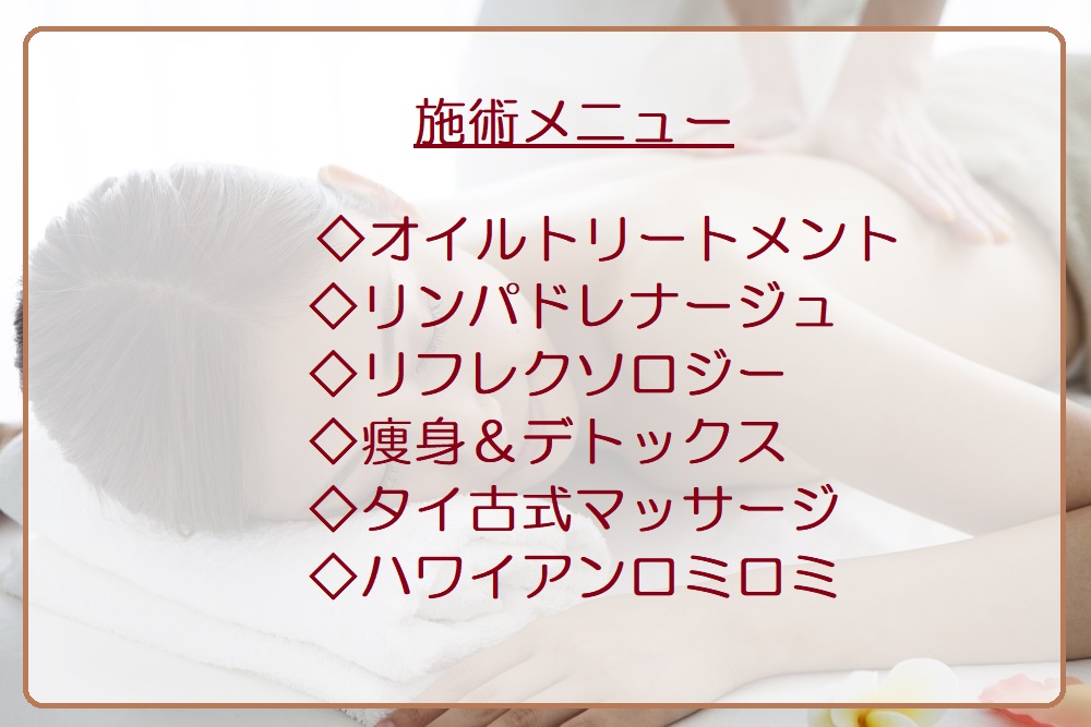 ※施術場所の利用料が発生した場合は、お客様負担とさせていただきます。
