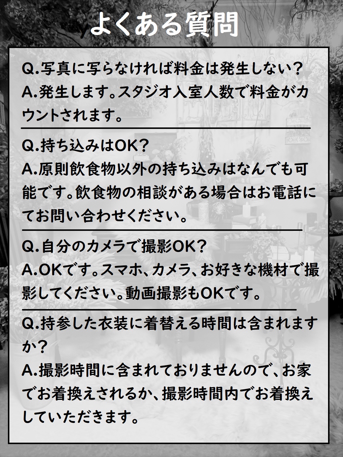 ・ご持参されるお洋服へのお着換えも時間内に含まれます。