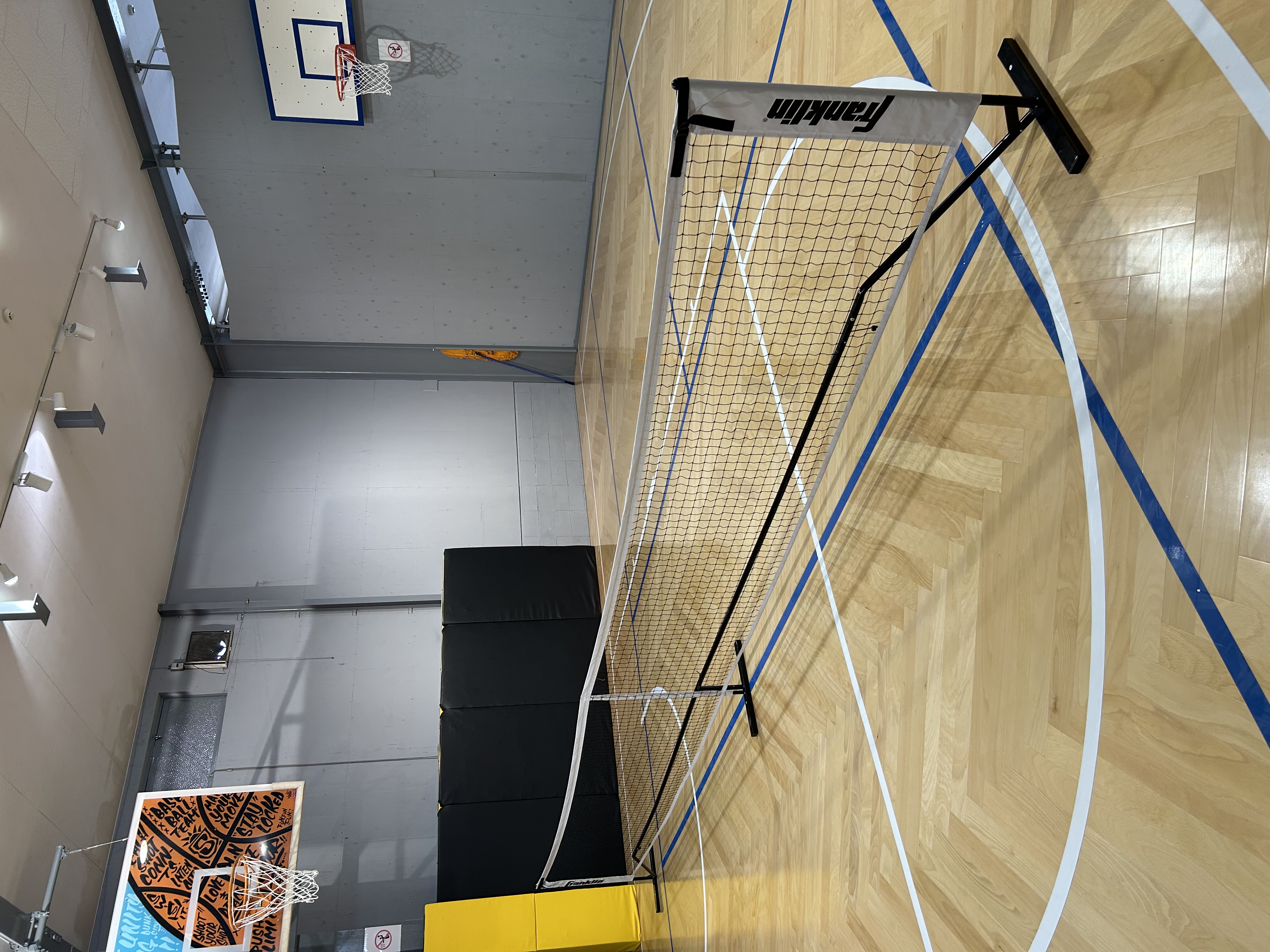 フロアには、体育館専用の床板を使用。