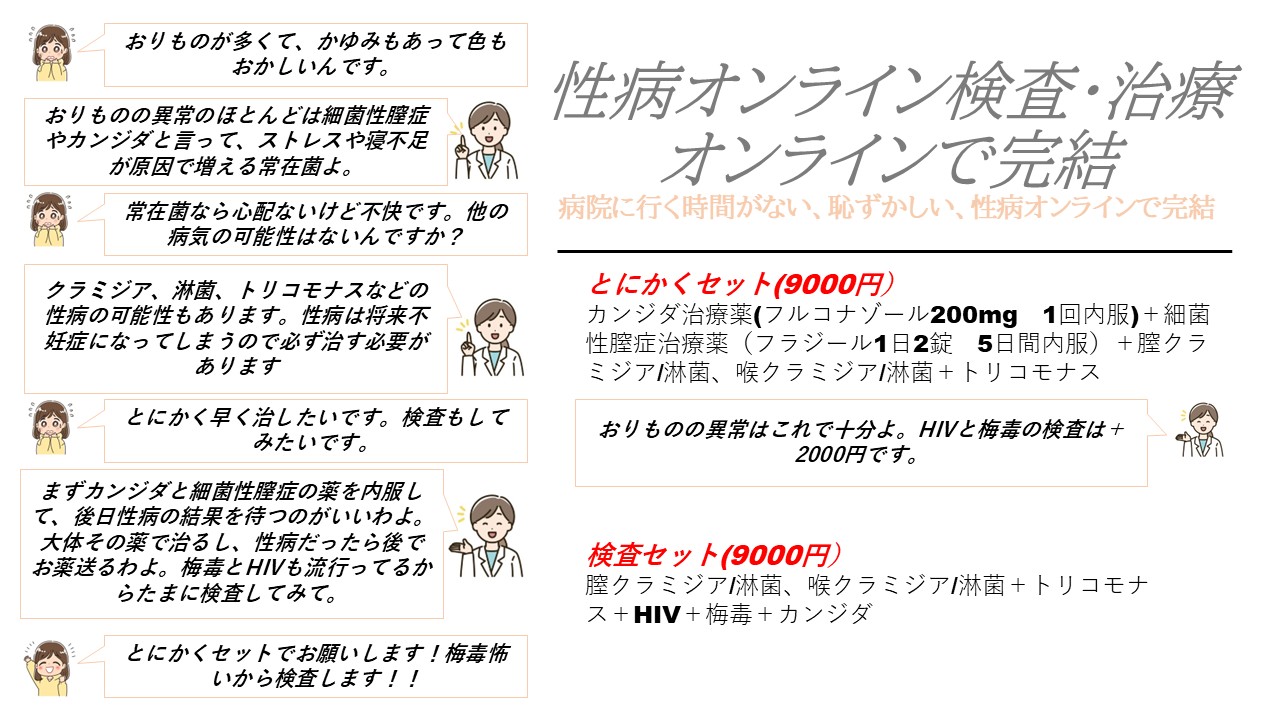 また淋菌、クラミジアは自院内の検査室にてリアルタイムPCR検査を行いますので迅速な検査と治療が可能です。予約制になります。郵送での対応も可能です。症状のある方は保険診療となります。