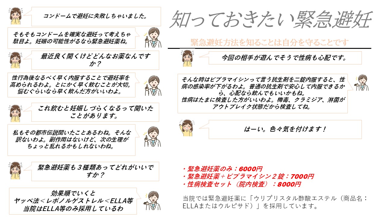 緊急避妊ピル:6000円・・・120時間以内に内服