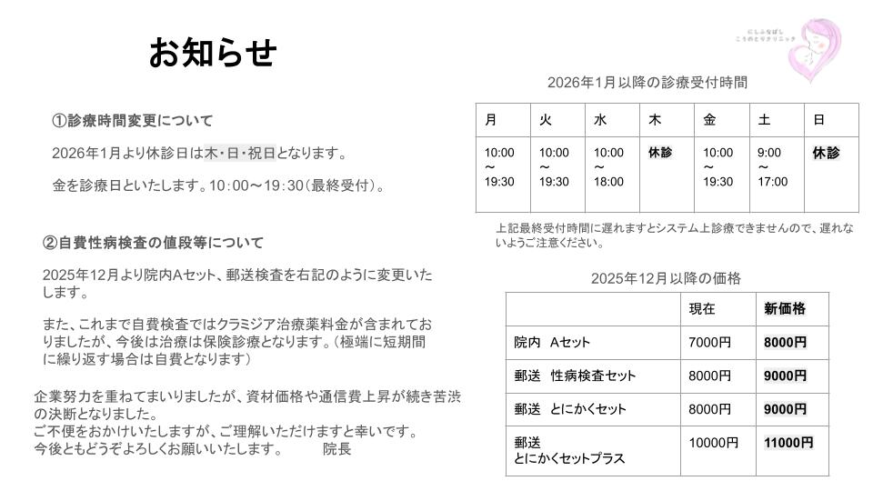 生理痛やPMS、性病検査や妊娠・不妊相談、船橋市のがん検診やピル相談、コンジローマレーザー治療、プラセンタ注射・白玉点滴など。妊婦検診に胎児診断など助産師と一緒に対応いたしますので、お気軽にご相談ください。