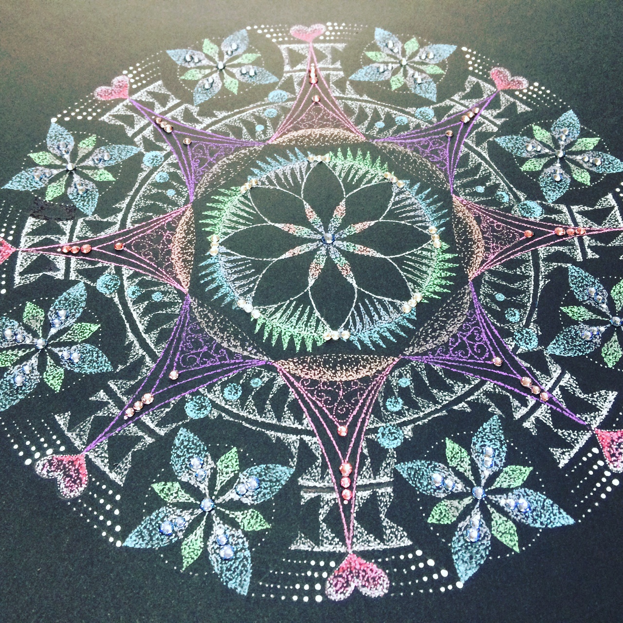 無心に点点を描くことでなんだかすっきりしますよ。絵心がなくても大丈夫。ゆったりとした気持ちで、世界でたった一つの作品を描いてみましょう。新しい自分に出逢えます。出来上がったマンダラにスワロフスキーを貼るととっても綺麗。