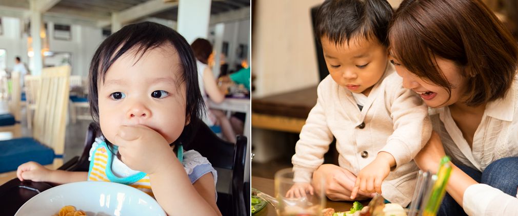 ベビーカー置き場、子供用イス、子供用食器、ウェットティッシュ、使い捨てベビーエプロン等は全店舗で万全の対応ができるよう努力しています。一方、各店舗のスペース上、おむつ交換台や、授乳スペースの確保は行き届いていない事もございます。詳しくはご予約時に各店舗の「子連れ対応表」をご確認下さい。