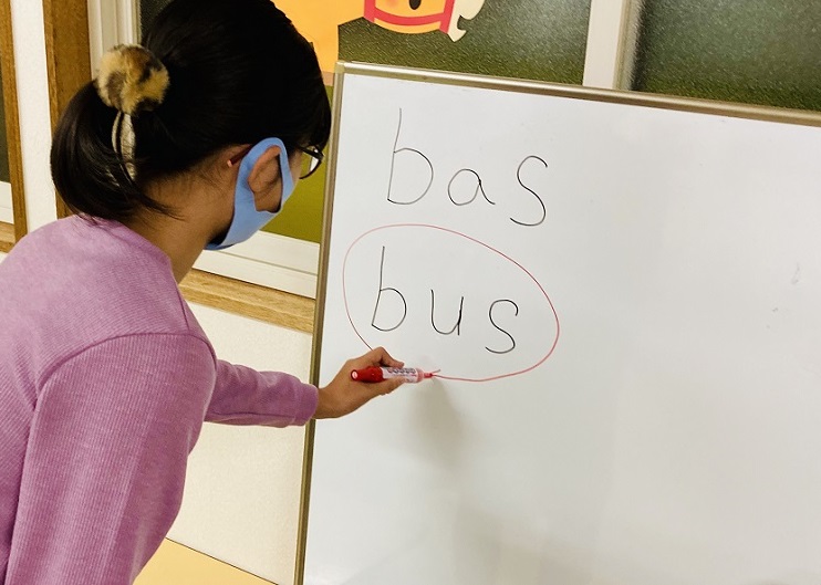 目で見て、音を聴いて、身体を動かして、自分で考えて、声に出す!のトレーニングを沢山行っています
