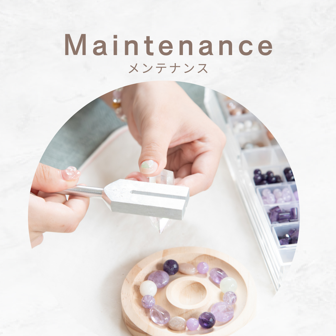 制作したブレスレットのメンテナンスメニューです。必要なものは残し、不要なものはお預かりします。2〜3ヶ月に一度メンテナンスにお越しいただくことで常に状態にあったブレスレットを持ち続けることができます。