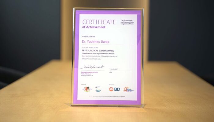 日本内視鏡外科学会が発表した最新(2021年)の集計では、当院は日本全国で行われたTEP法の16.3%を、臍だけで行う手術(SILS法)の98.1%を占めています。