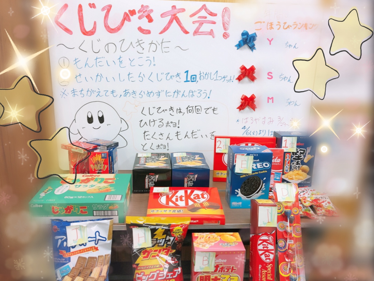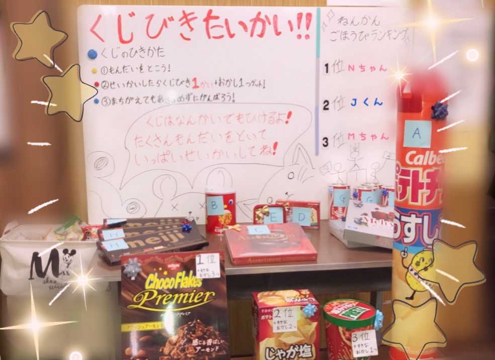 年に1回、問題が解けた子から順番にくじ引きを引いていきます。