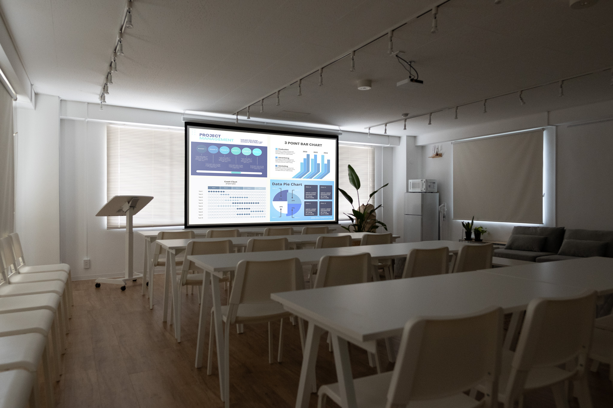 やわらかい雰囲気と洗練されたデザインが融合し、訪れる誰もが心地よく、創造的になれる。温かみと機能性を両立したワンランク上のレンタルスペースです。