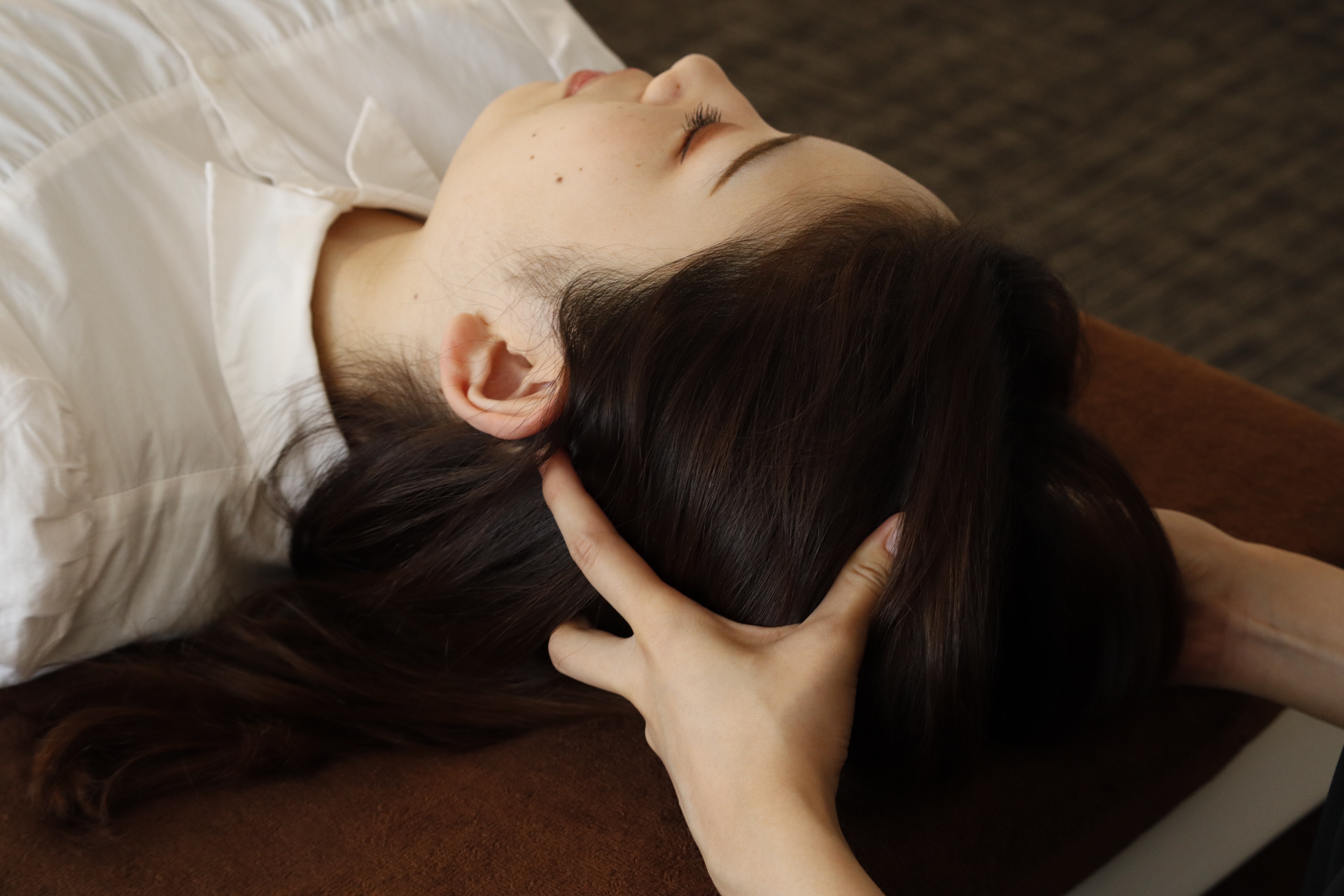 肩や目が疲れやすい方に、頭から首にかけてもみほぐします。
