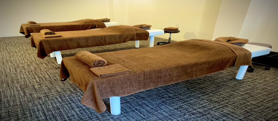 当店は全てベッドで施術を行います。30分のメニューまでは特にお疲れの箇所のみを重点的にもませていただきます。45分以上のメニューは基本的に頭から足まで全身をもんでいきます。最初に特にお疲れの箇所をお聞きして、3分の1以上の時間はそこを重点的にもみます。