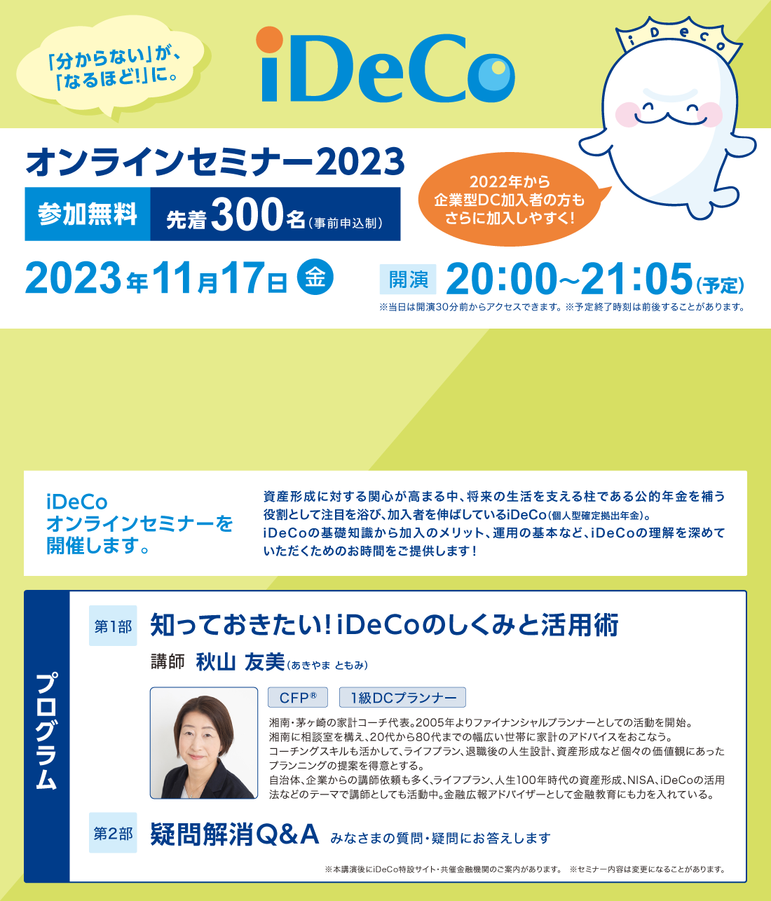iDeCoオンラインセミナー2023を開催します。