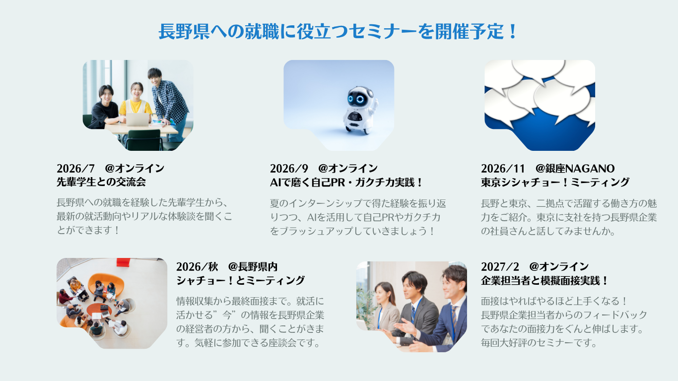 ●対象:長野県へU・Iターン就職を希望する学生(既卒3年含む)