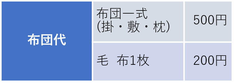 ■来村の際は管理棟で受付し、入村料と以下の利用料金をお支払いください。