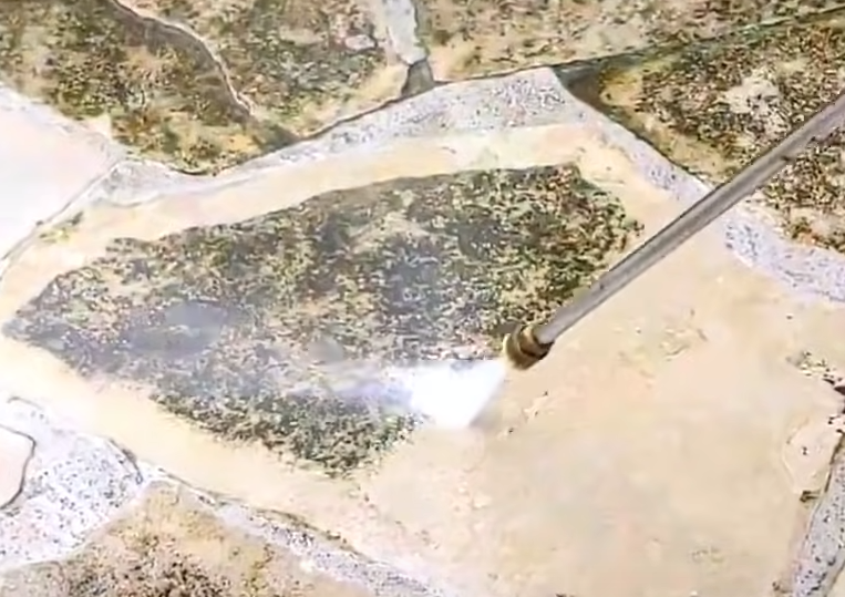 発生しているカビやコケ、水アカなどの汚れを水圧で洗浄します。