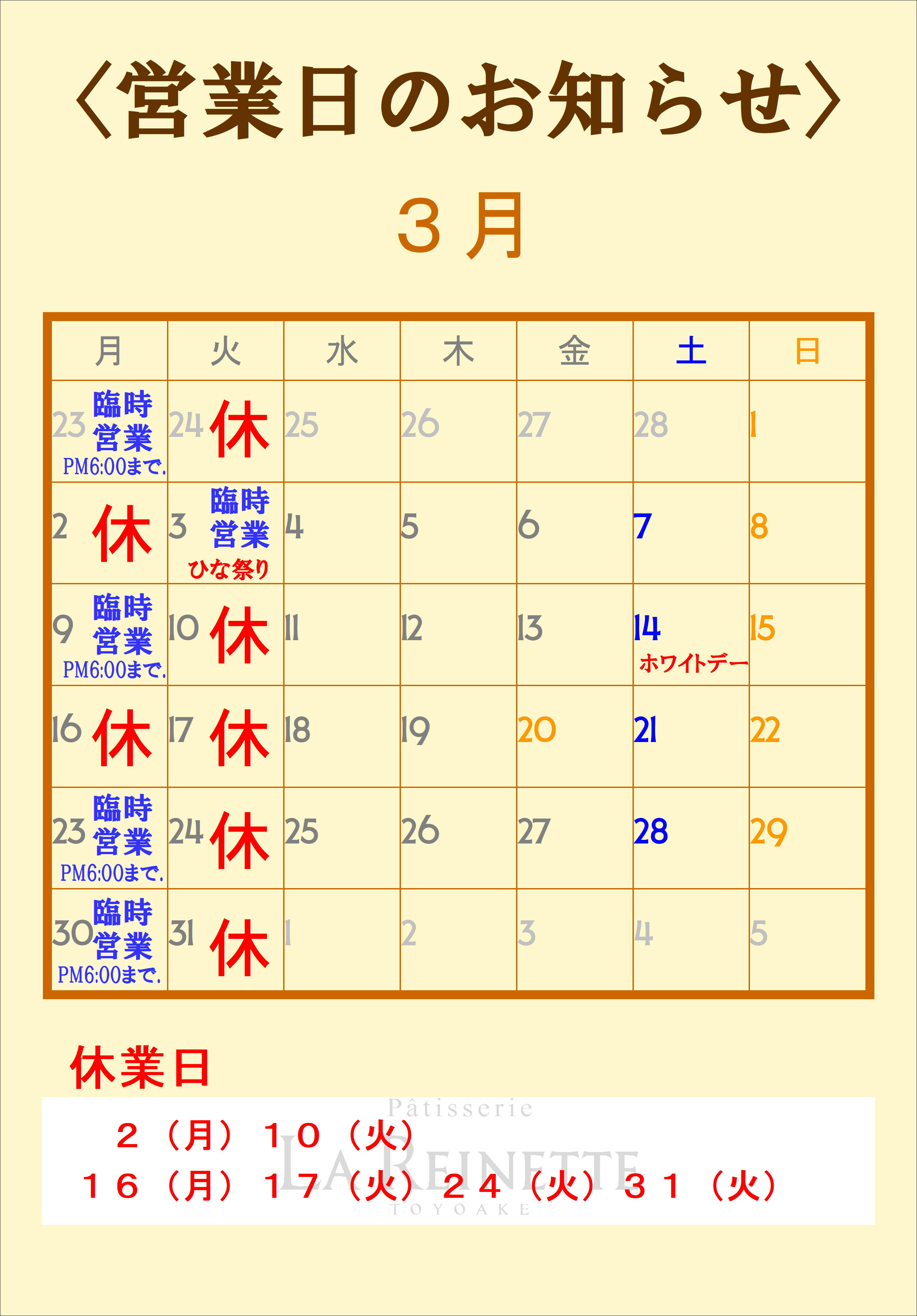 愛知県豊明市西川町荒巻64-4 定休日 :月曜日・火曜日