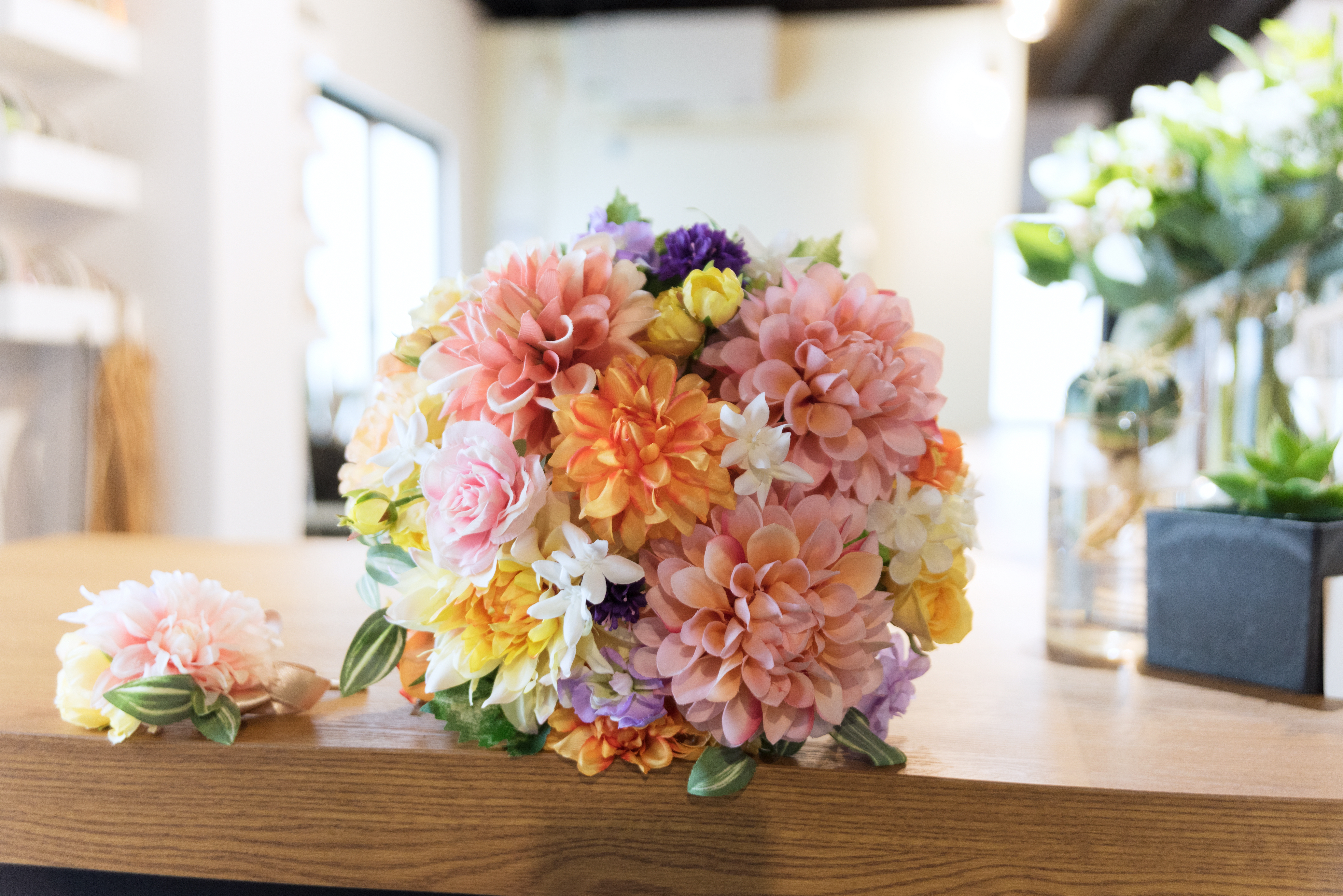 季節に関係なくお好きな花を選べ、使用後はいつまでも綺麗な状態で飾れます。
