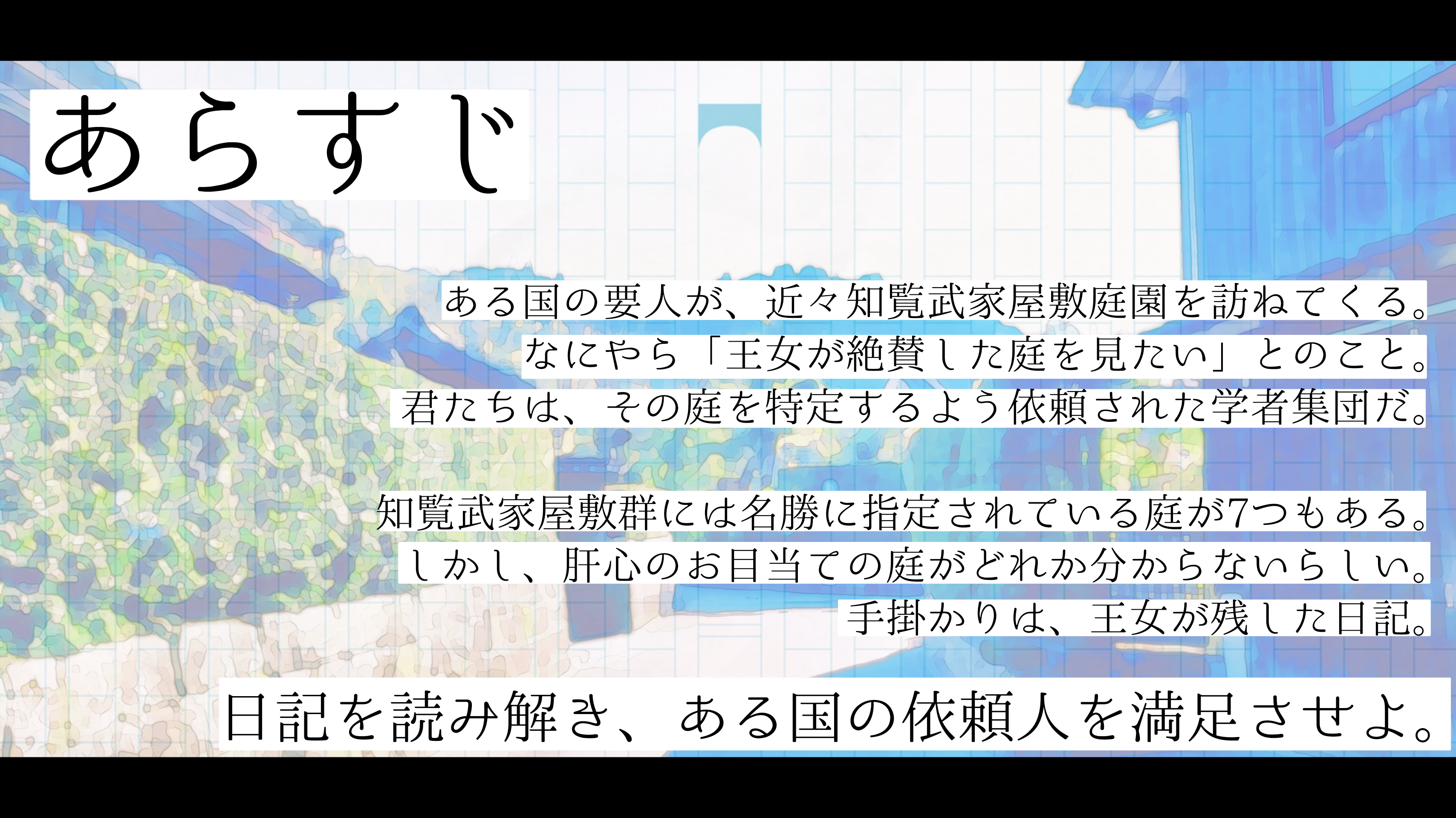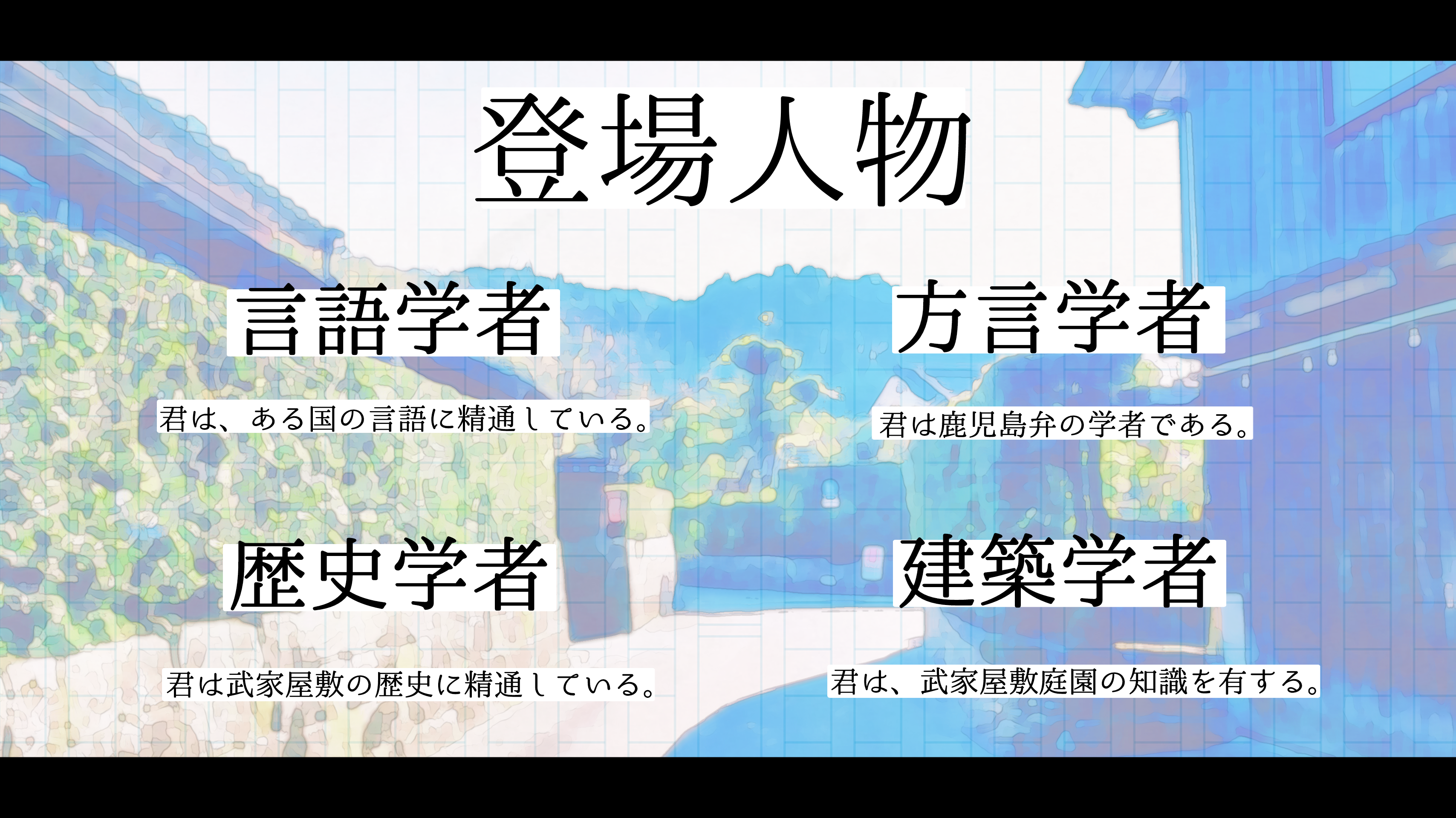 マーダーミステリーというトークゲームを用いて、まちおこしのイベントを行うプロジェクト。
