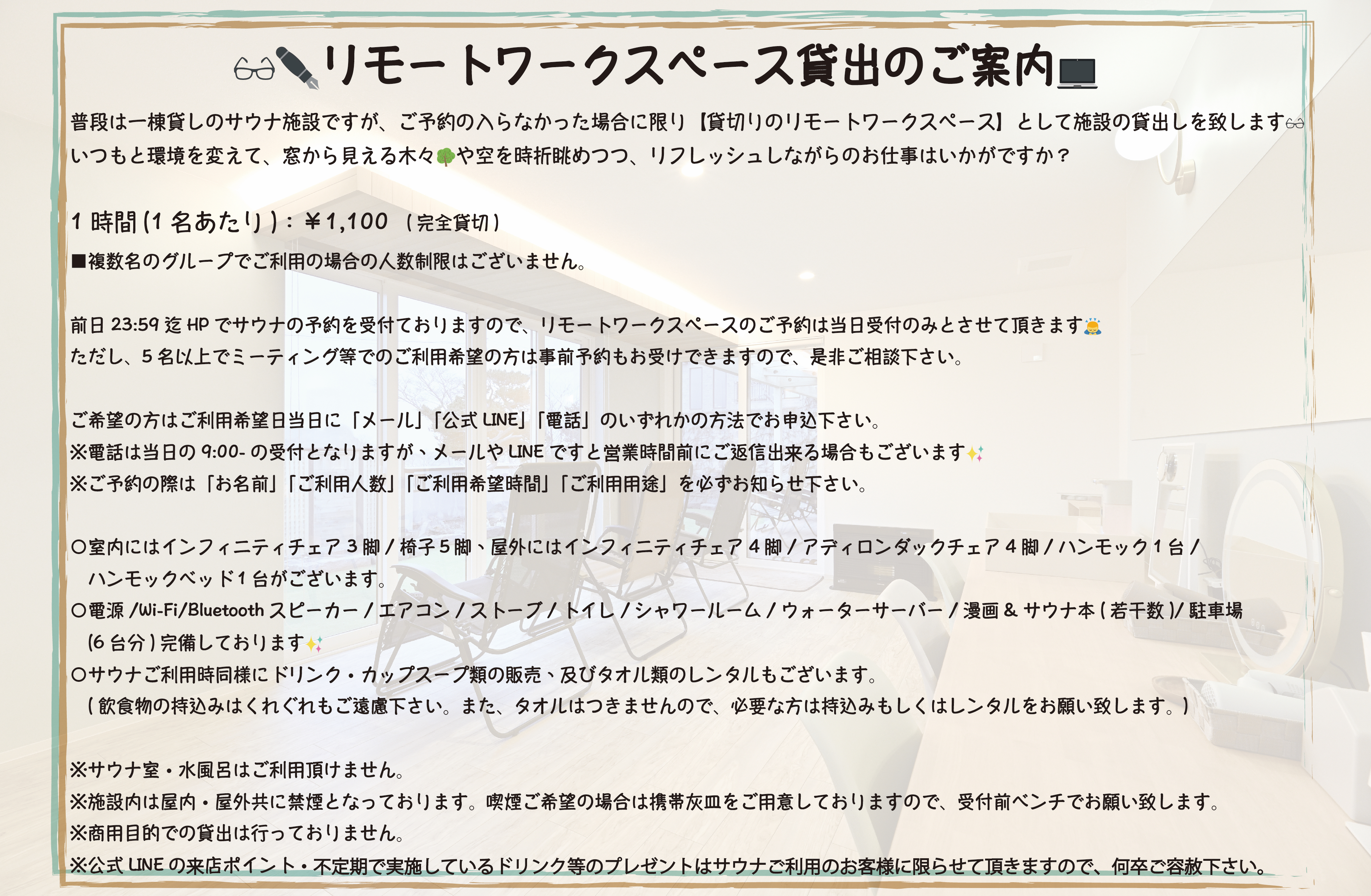 | moruransauna@gmail.com (公式LINEでのお問合せもお受けしております。) | |