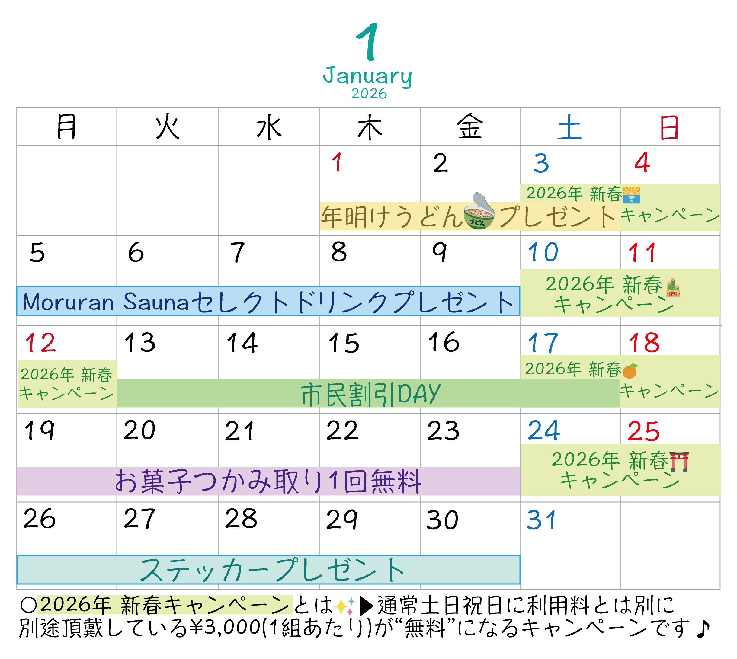 <1月市民割引DAY開催日程>