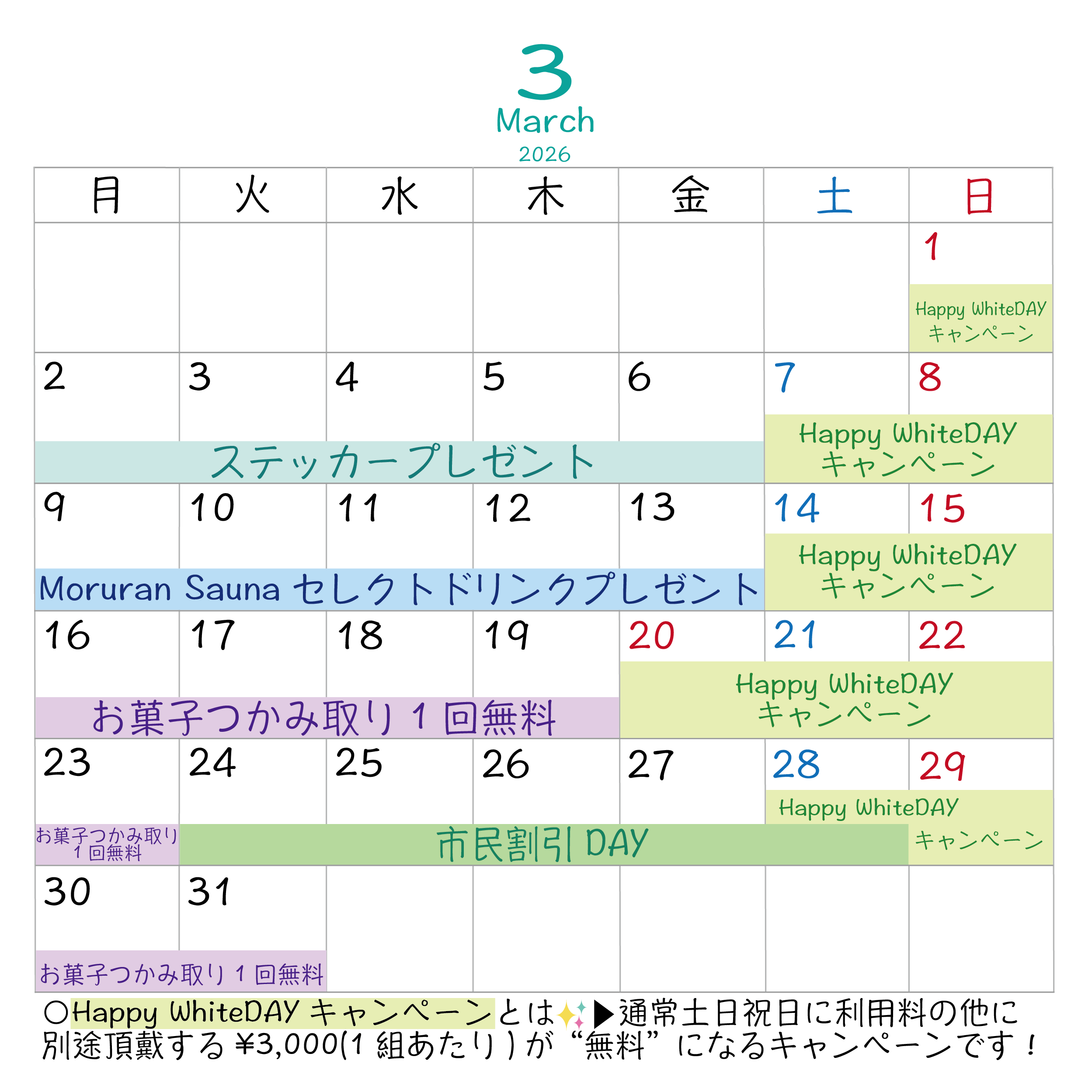 <3月市民割引DAY開催日程>