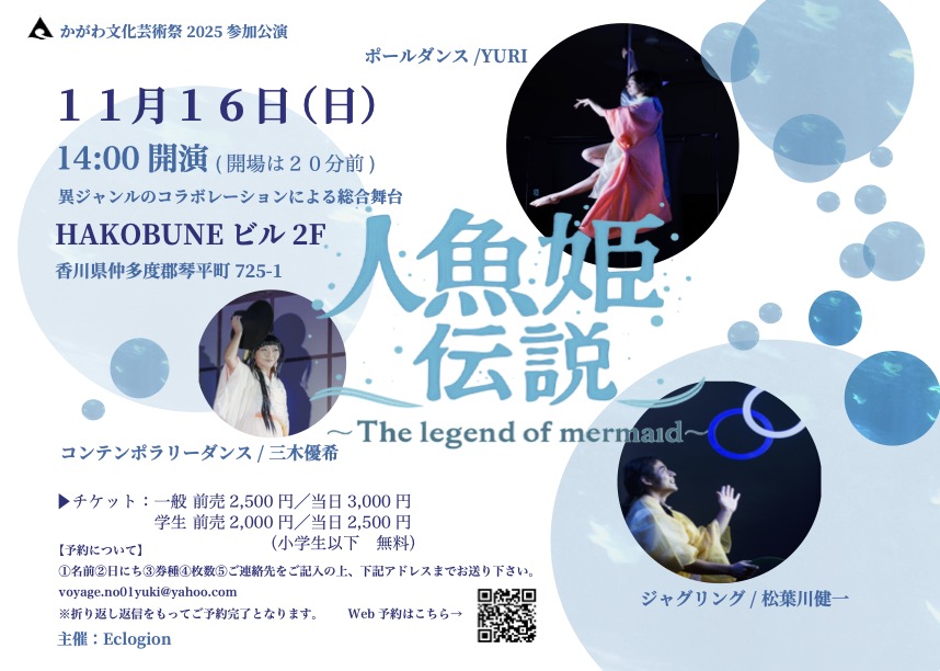 「人魚姫の物語〜The legend of mermaid〜」 ▶公演日時 2025年 11月16日(日)14時〜 ▶︎会場 HAKOBUNEビル
