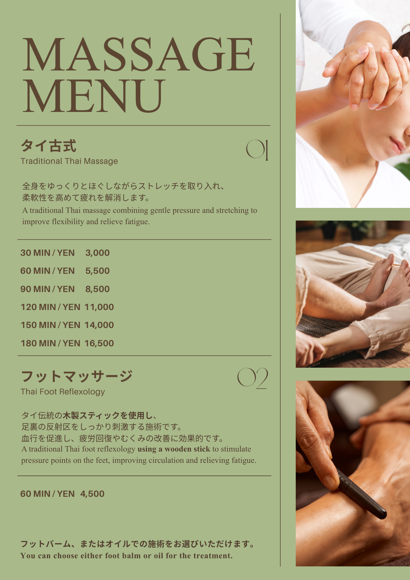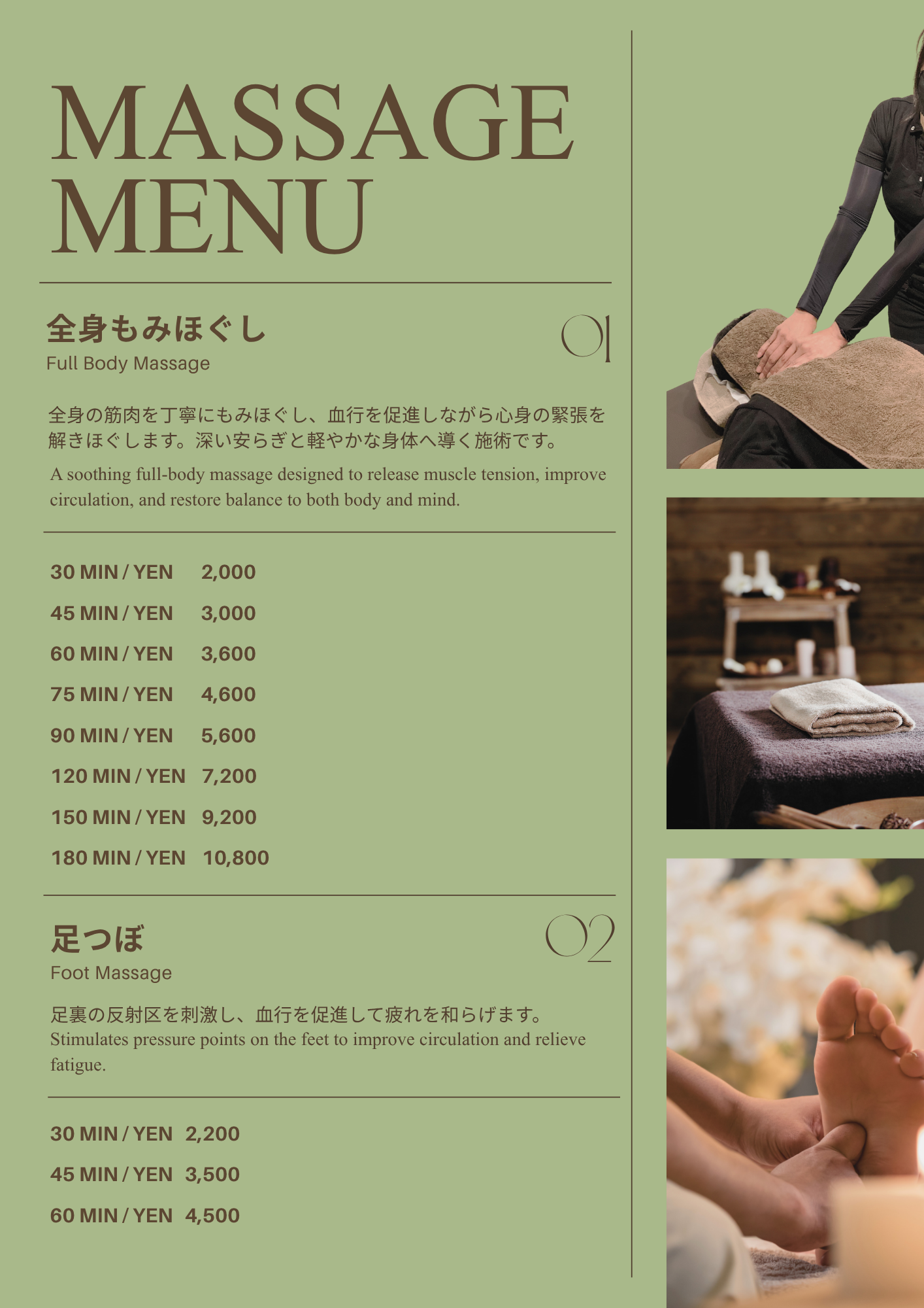 メニューと料金
