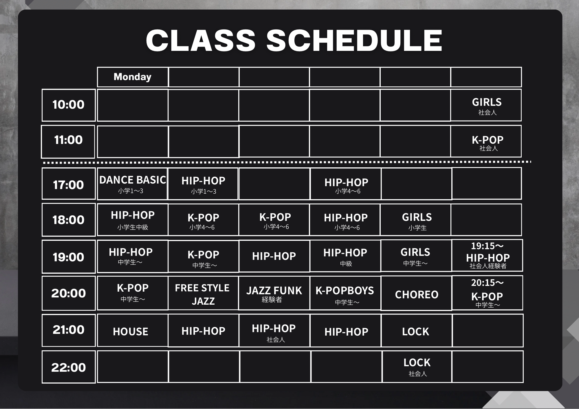 西新校・吉塚校・キャナルシティ博多校についで本校が竹下にOPEN! 全ての場所において子供から大人まで楽しむことを一番にレッスンしています。 リズムにのり、ダンスの楽しさを心と体で感じてください‼ 本校では、レッスンのない時間をレンタルスタジオとして利用していただけます。個人レッスン 、ミーティングやサークル活動にもどうぞ。 定期利用もお問い合わせください。