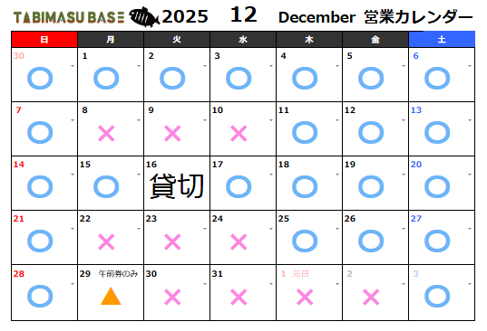 | 土日祝貸し切りサービス(6人~) | ¥5,000×人数 |