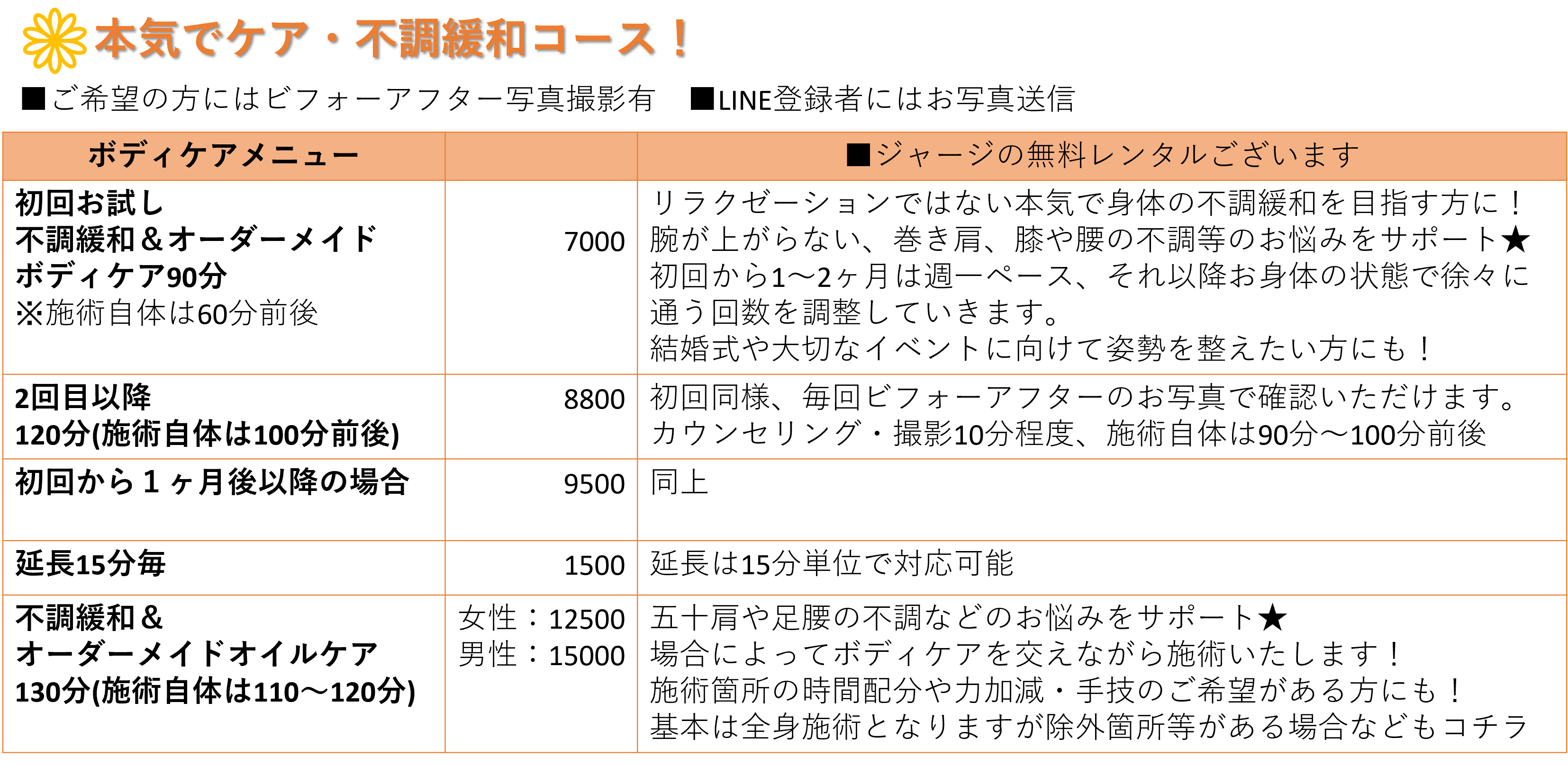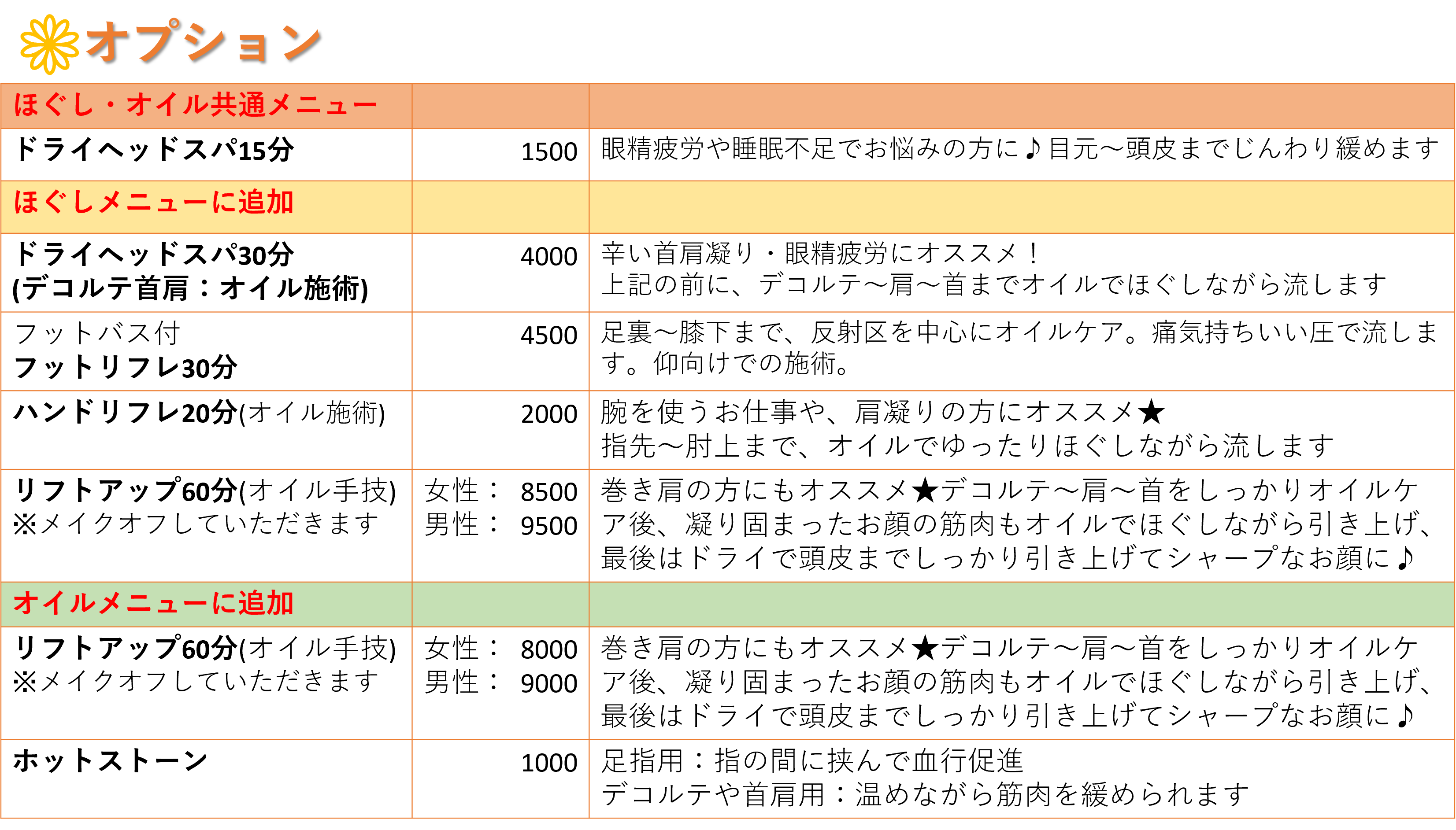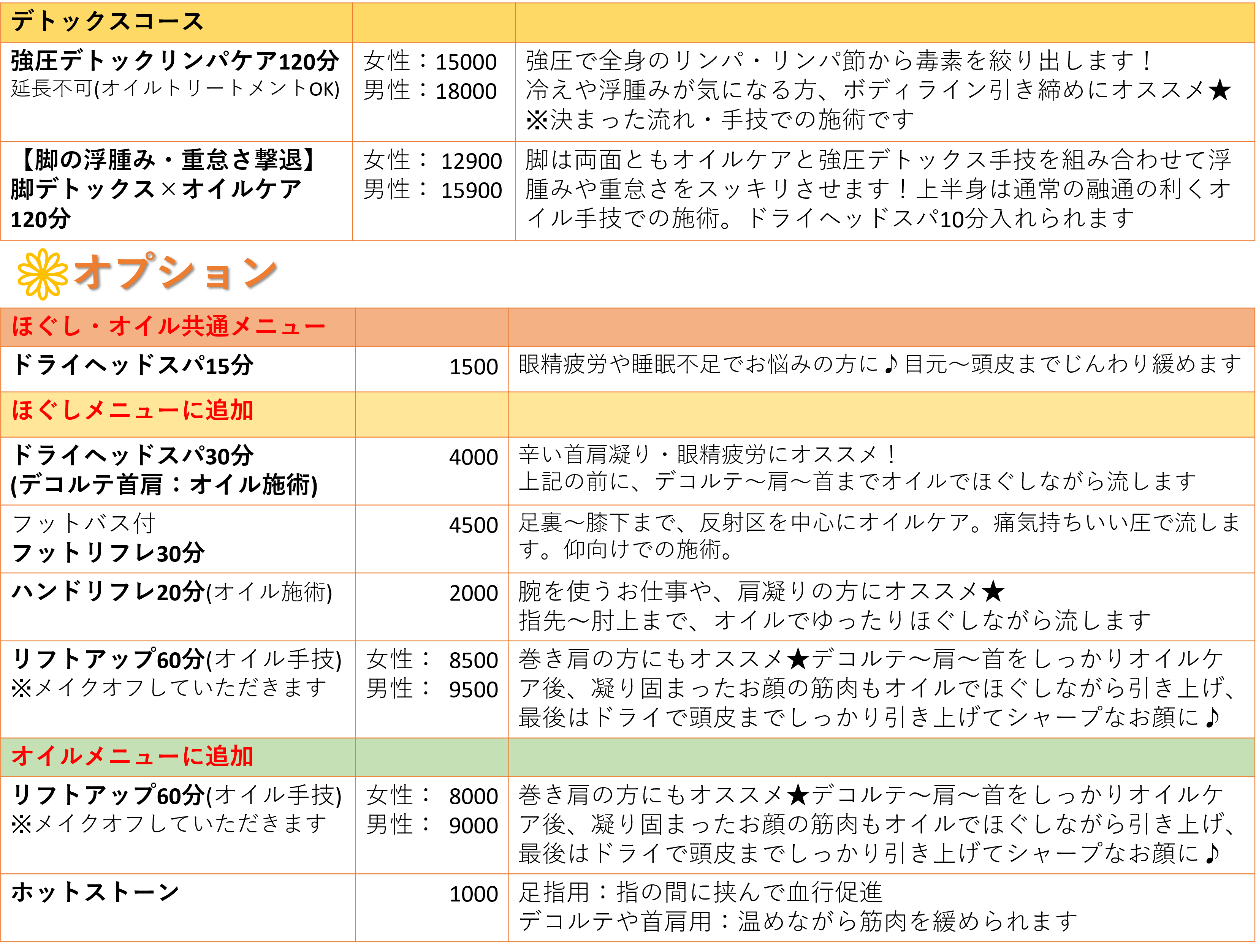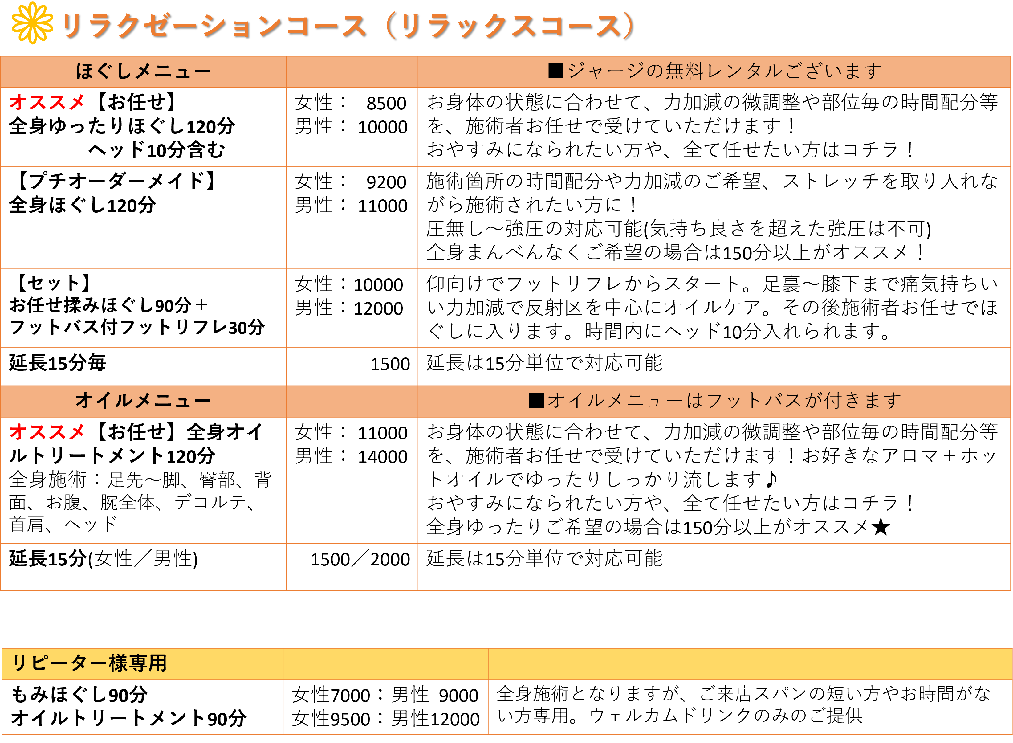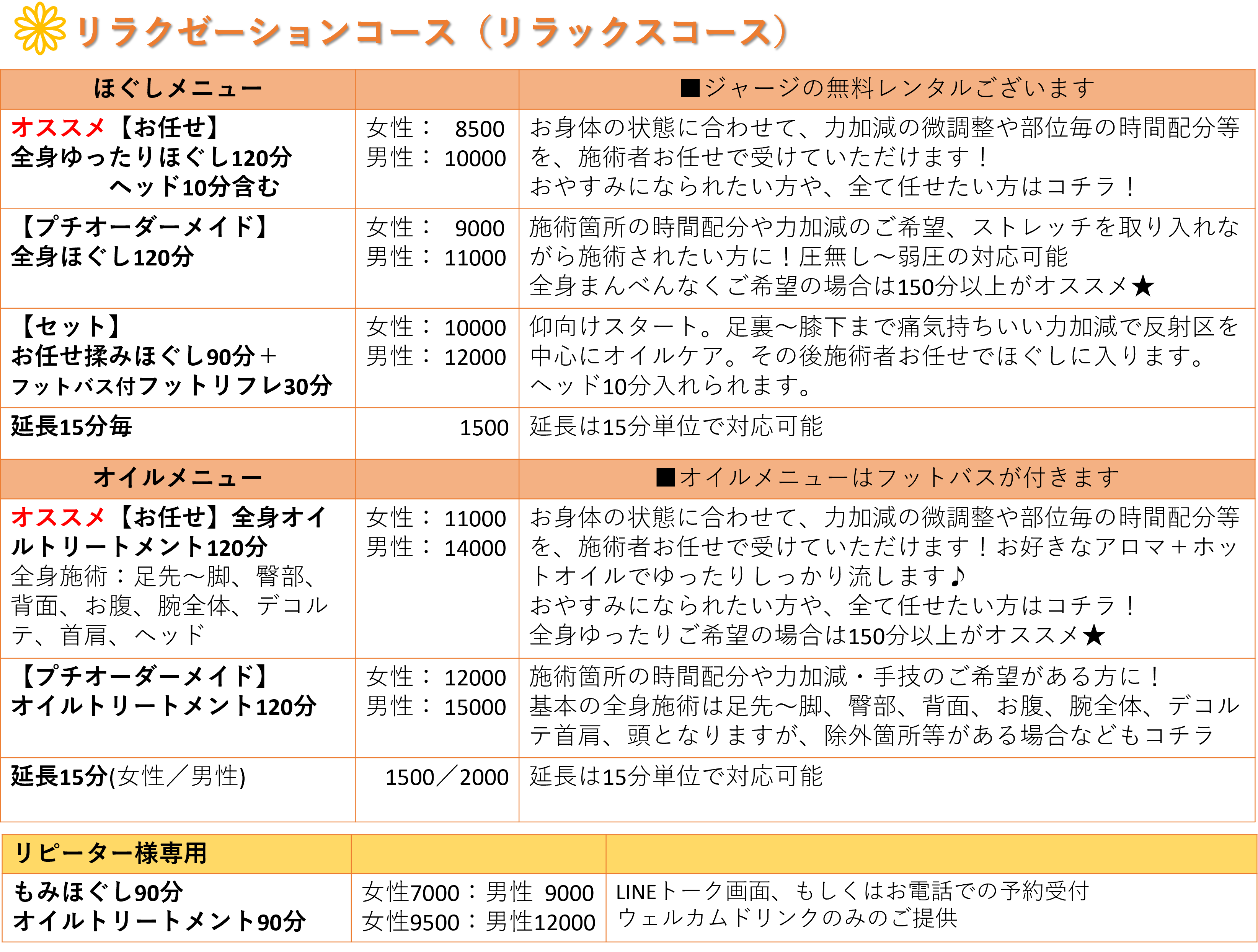 ◆ご予約の際:氏名、電話番号、ご年齢、希望日時、希望メニューをご記載下さい。