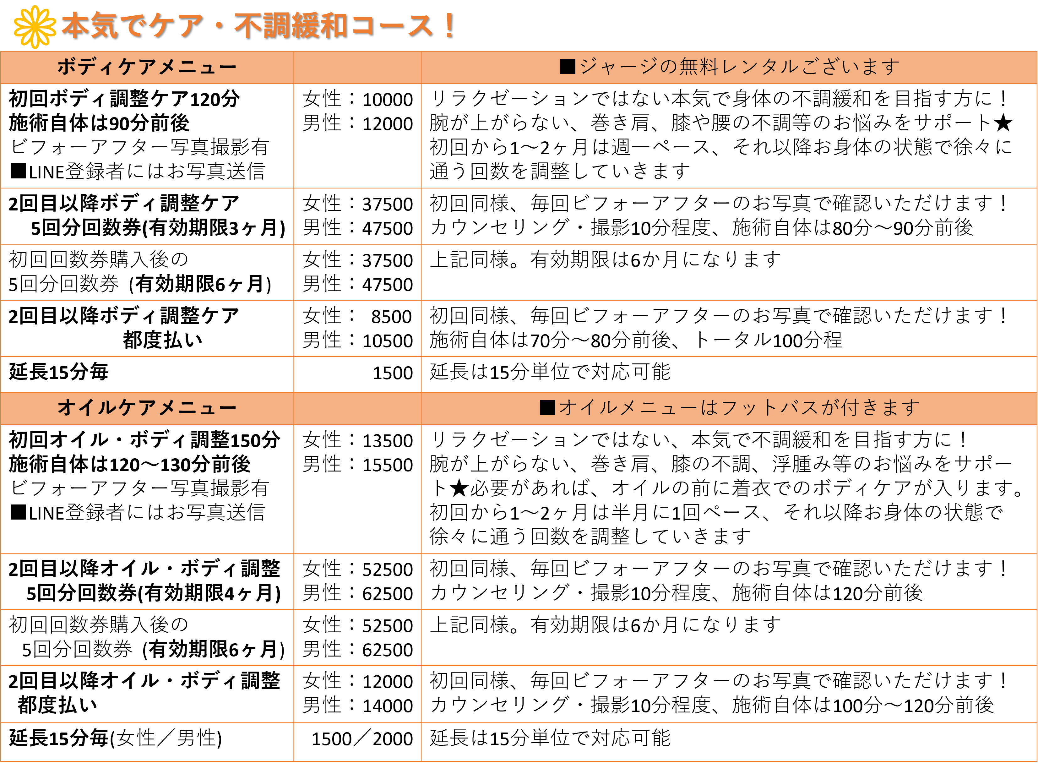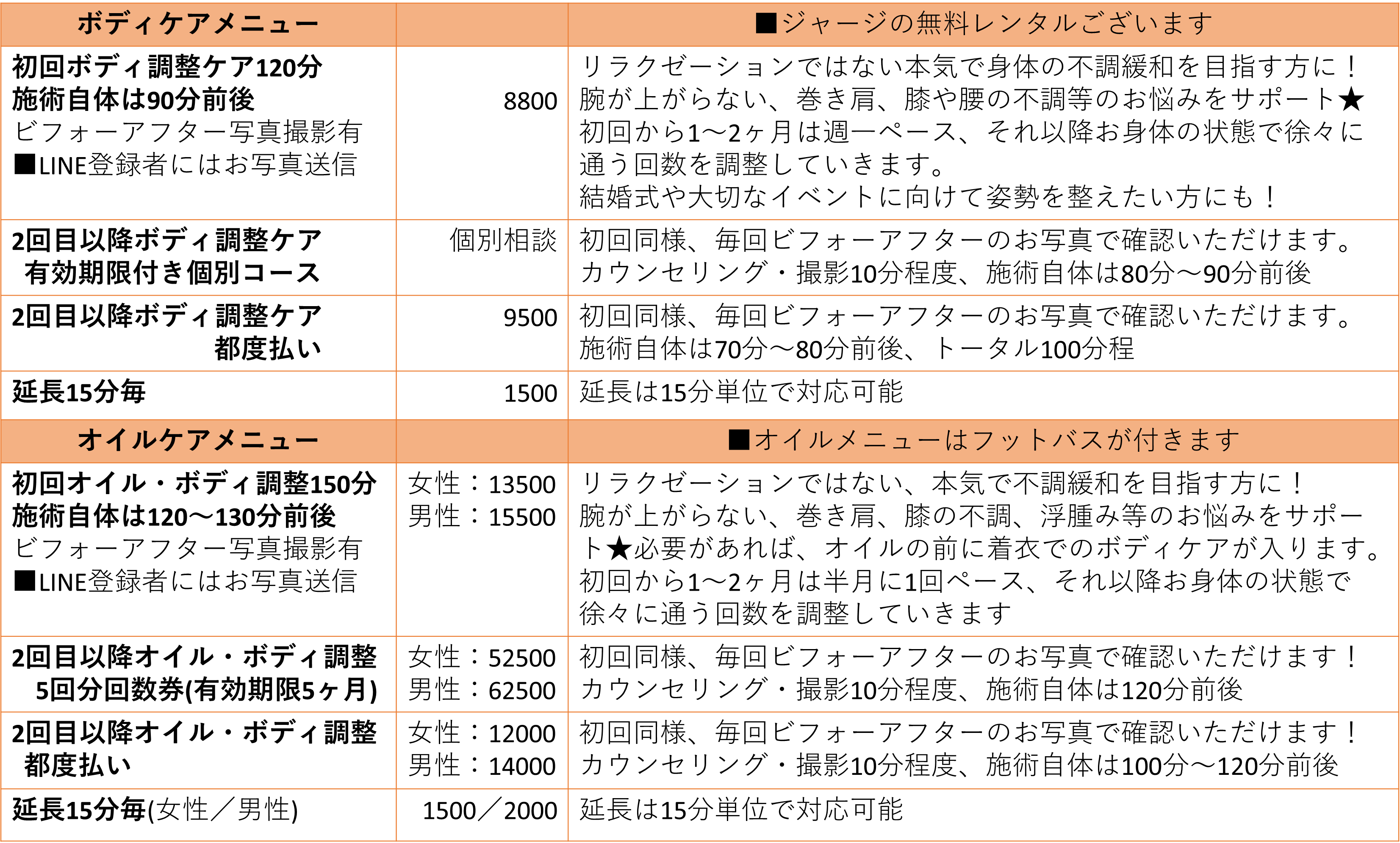 ※場所によって出張料金変動致します。(近場:施術料金+2000円~)