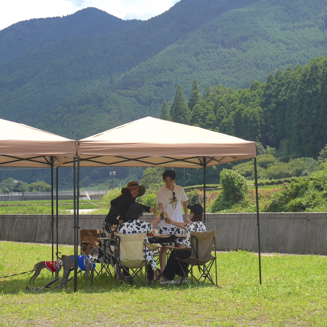 デイキャンプ サウナ前後に自分達の拠点を完備!