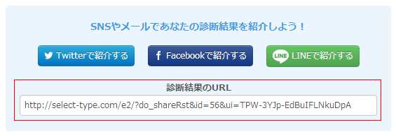 SelectTypeで回答した診断テストの結果をブログやSNSにリンクを貼ることができます。