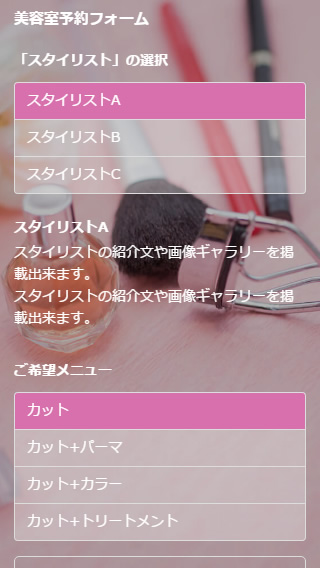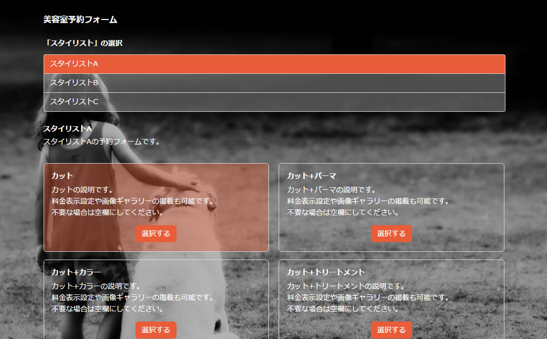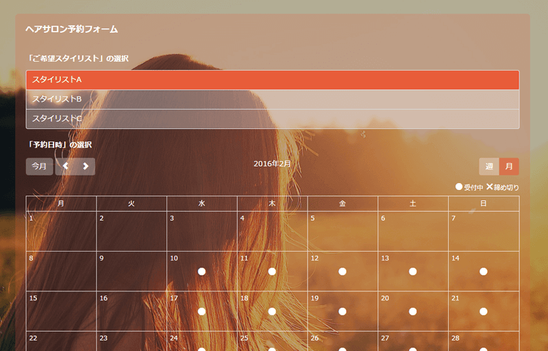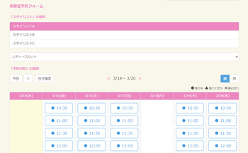SelectTypeの予約システムでは、サロンのスタイリスト・美容師・理容師ごと予約カレンダー(予約フォーム)が作れます。