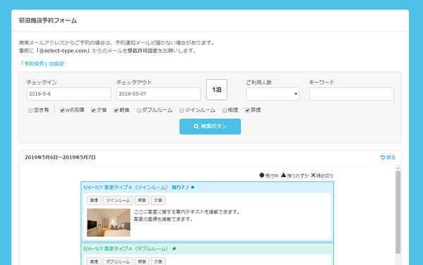 予約可能なお部屋情報を的確にご案内出来る予約システムです。