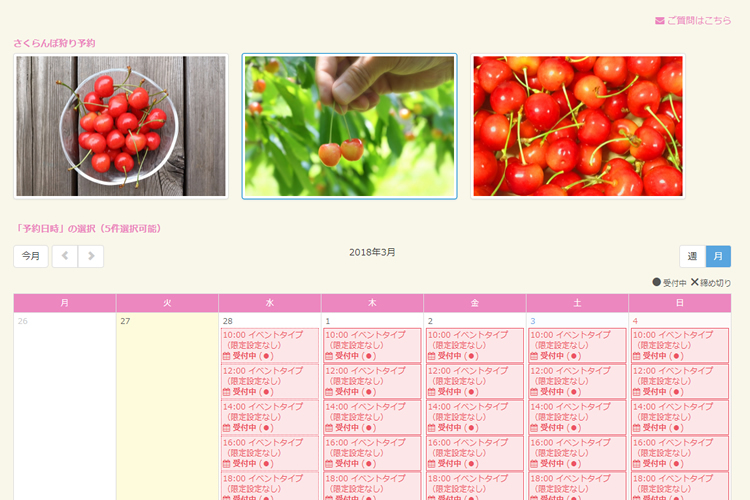 日付単位での調整が可能ですから、こちらもさくらんぼの状況に応じて日々調整し適切にご予約受付しましょう!