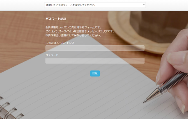 一方、現会員様向けにメンバーログインが必要な予約カレンダー・予約フォームを作成することも可能です。
