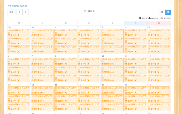 オープンな体験レッスン予約カレンダーと同居させてセットアップすることも出来ます。
