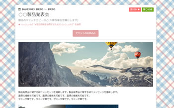 作り方はいたって簡単、数クリックでひな形は完成します。あとはイベント内容や画像掲載、会場情報などを適宜調整していくだけです。