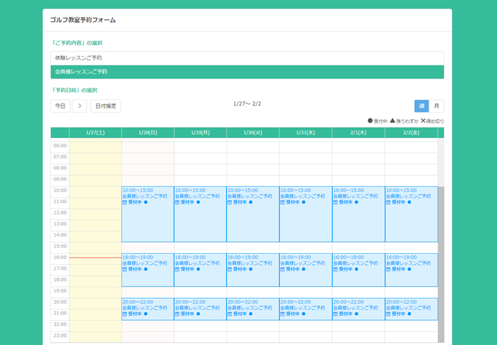 ゴルフ教室・ゴルフスクール向けの予約システム