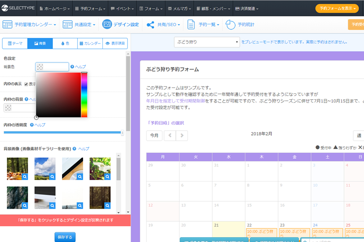 SelectTypeの予約システムでは予約フォームのデザインがフルカスタマイズ可能です。