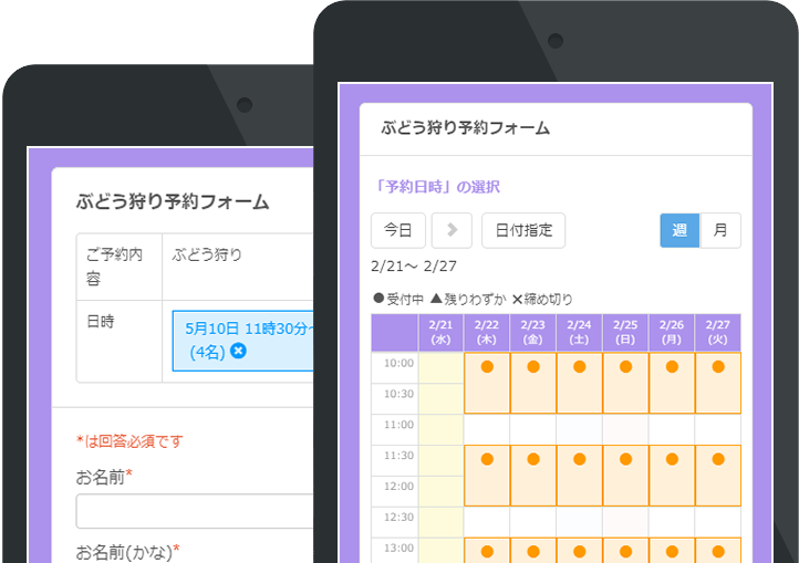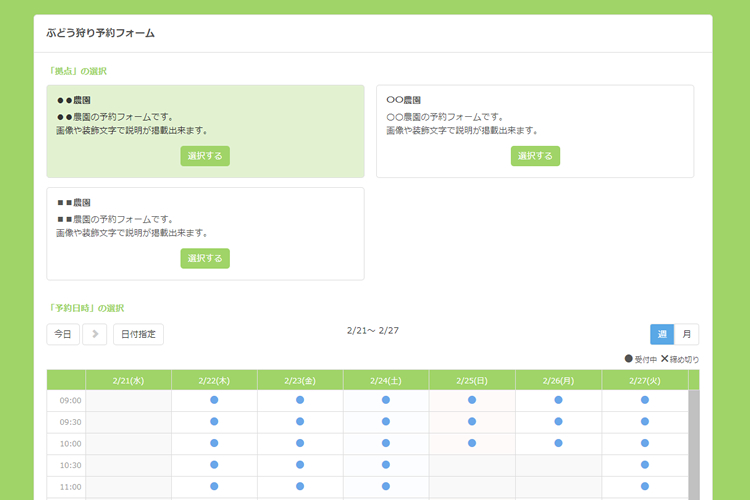 あなたのぶどう農園のイメージカラーをふんだんに使用した予約フォームを作成することが出来ます。