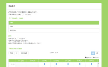 患者様は目的の診療科目、担当医の予約カレンダーで空き状況を確認できます。