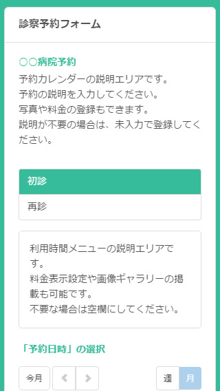 予約フォーム・予約カレンダーごとに文章や写真ギャラリーを設定出来ます。