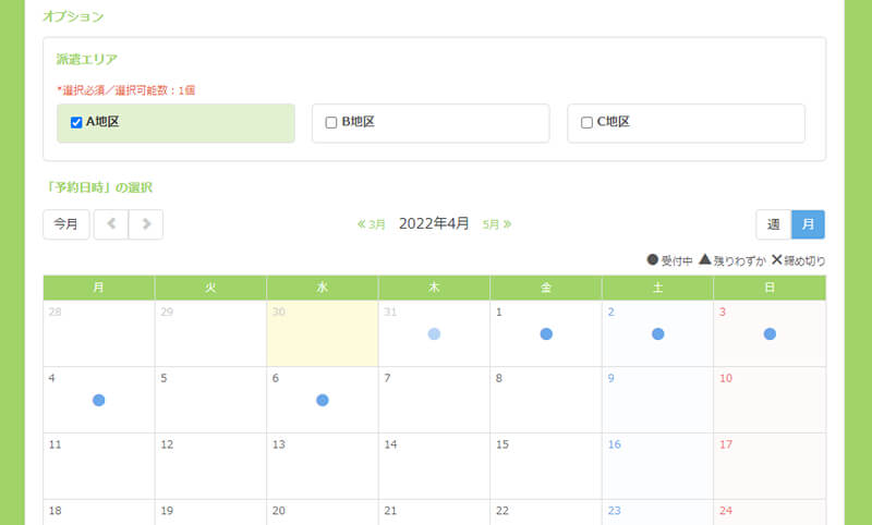 SelectTypeの予約システムではお客様のリクエストされた派遣先に応じて所要時間を自動調整することが可能です。