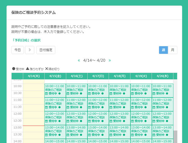 保険の窓口業務用のインターネット予約システムが構築可能です。