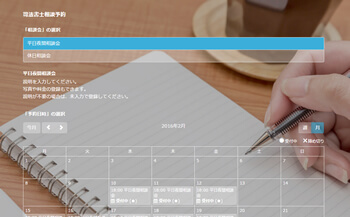 法律関連の種々のカウンセリング/相談をネットでご予約受付できる予約システムです。